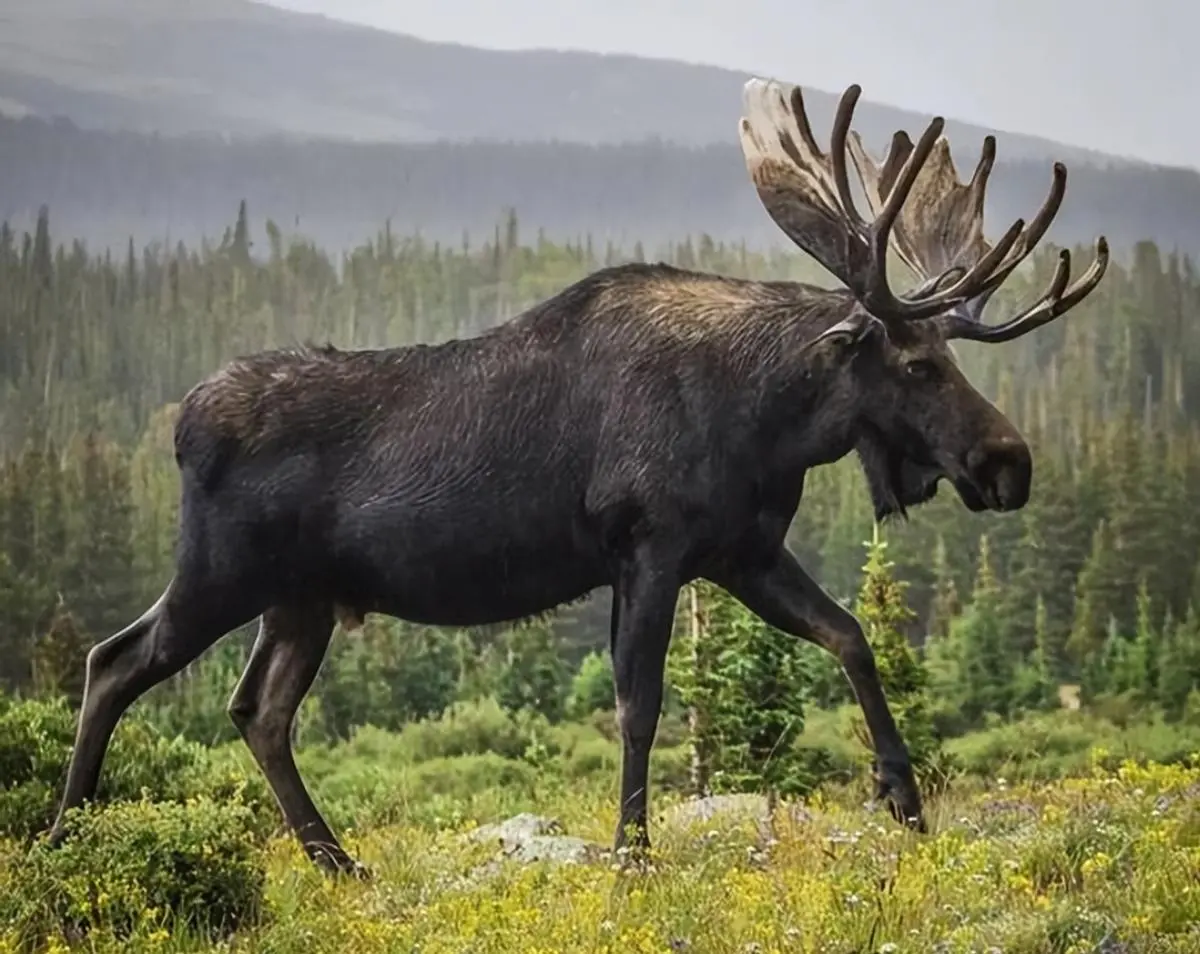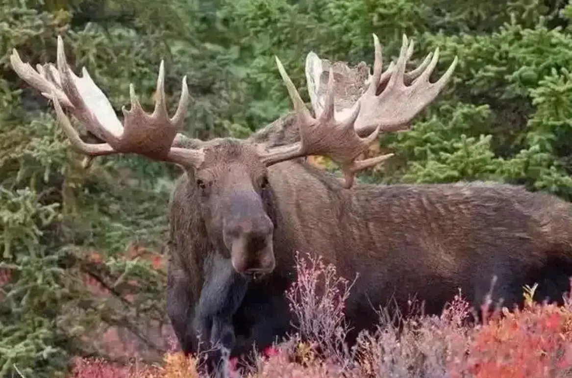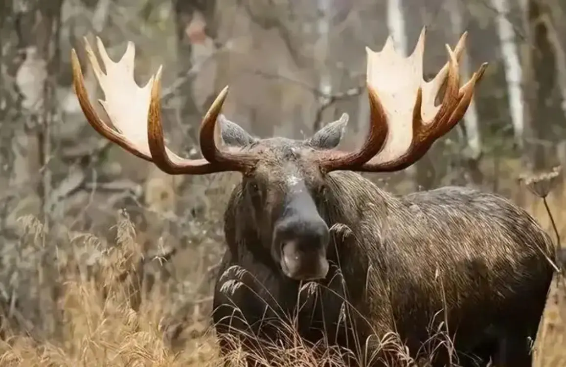成年驼鹿的身高可以达到2米,体长大约2.8米,体重最重可达700公斤,和一头非洲水牛差不多。生活上它们只吃草,在体型和力量上它们绝不是吃素的。
